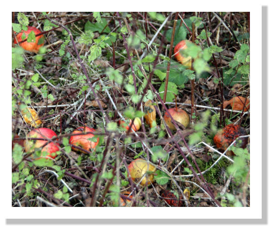 lieben ihn und ich auch! Die Tiere lieben die Blätterhaufen, die liegengelassenen Äpfel als letzte Zuckerreserve und das Totholz und die Misthaufen hinunter zum Bach.