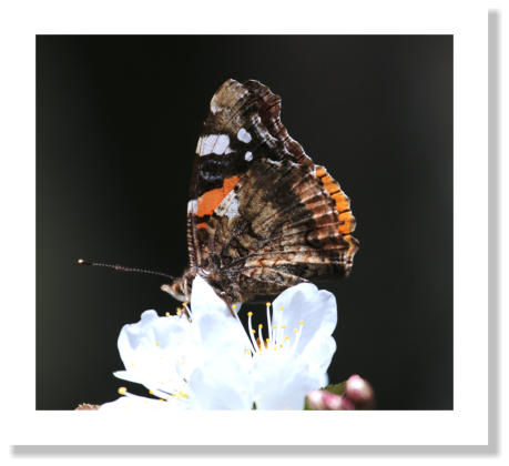 Die! Admiral - Vanessa atalanta - ist ein prachtvoller, auffälliger Tagfalter mit weißen Punkten an den Flügelspitzen und einer knallig